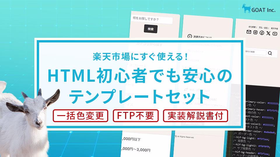 【無料DL】爆速実装!楽天市場 HTML初心者でも安心のヘッダー・フッター・サイドバー テンプレート